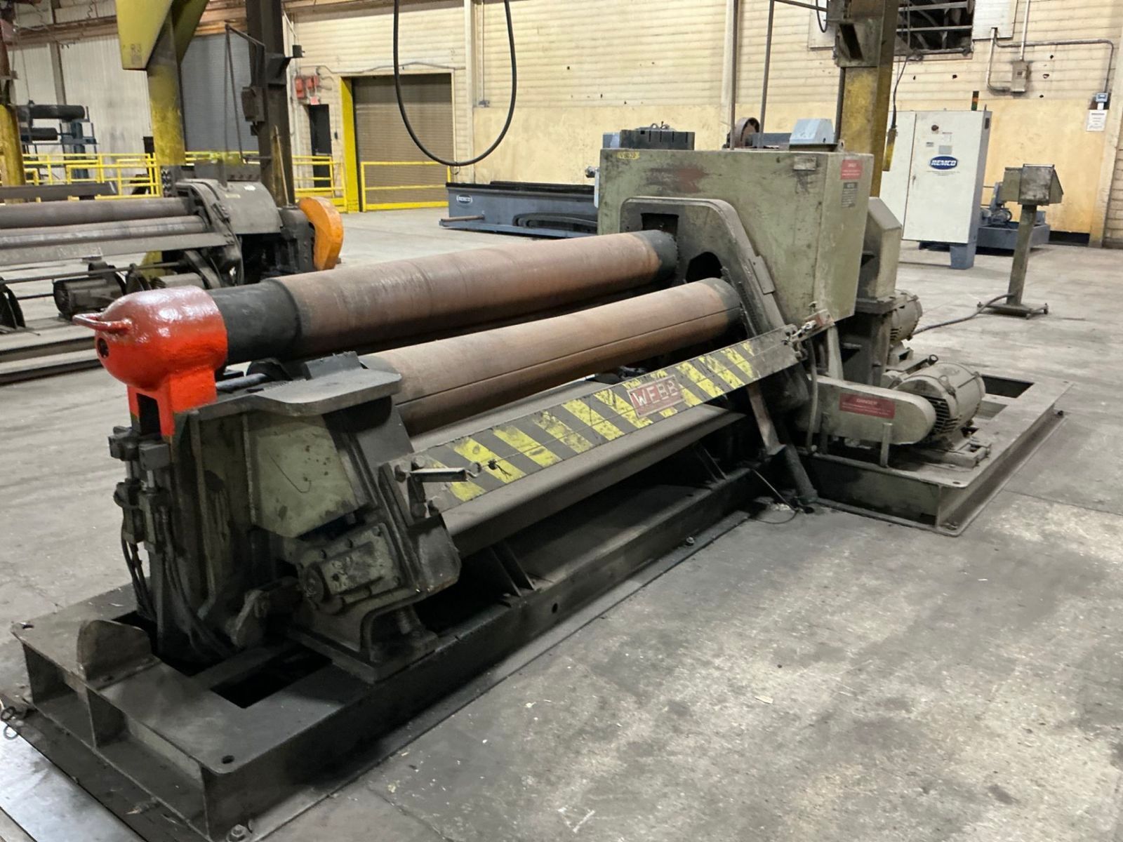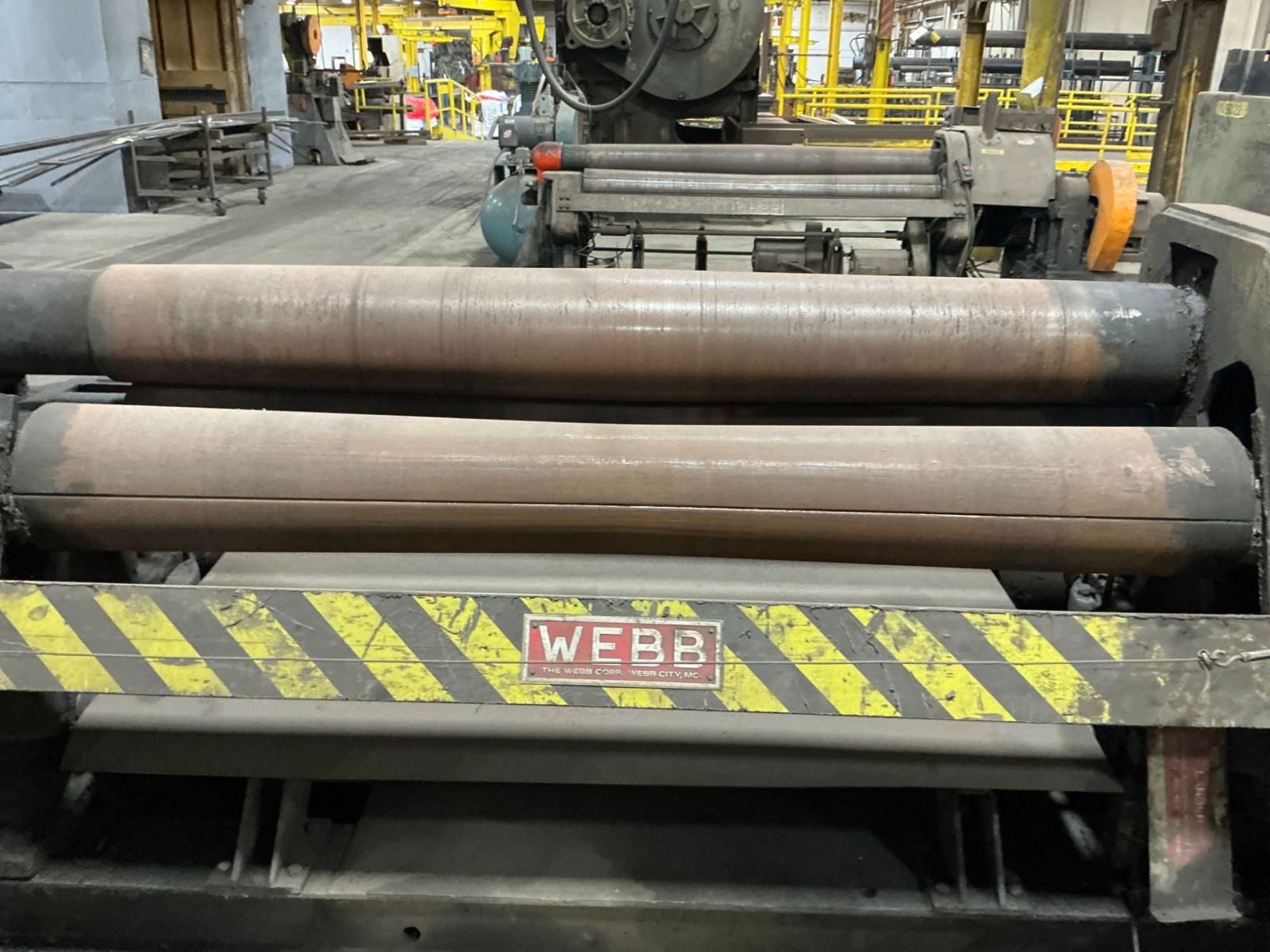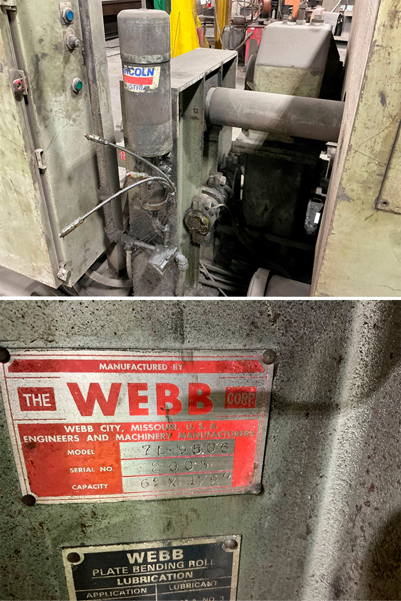 Roladora inicial WEBB Capacidad: 6' x 1/2" Diámetro de los Rodillos: 9" Modelo: 7L-9506 Serie: 2003 3 Rodillos Tipo: Inicial Peso: 12,000 Lbs