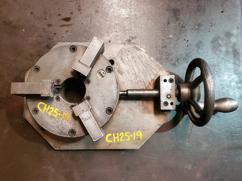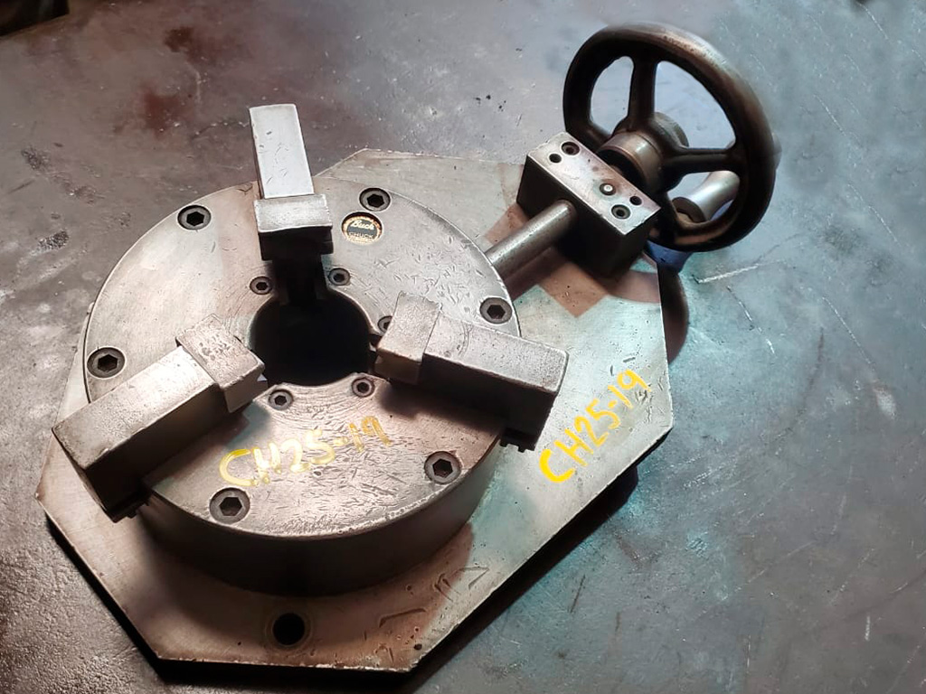 Chuck con base fija Diámetro: 7 1/2" Paso de barra: 2" Altura: 2 3/4" 3 mordazas universales
