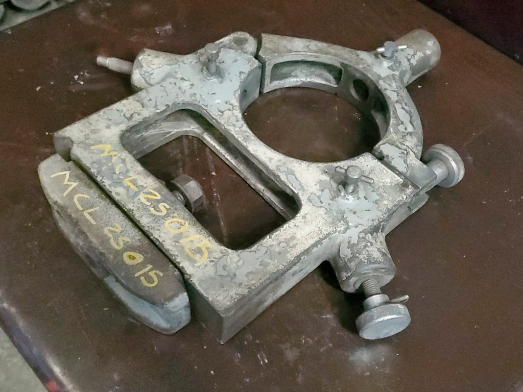 Luneta para torno Diámetro: 6 1/2" Altura al centro: 10" Distancia entre bancadas: 9" Largo: 19" Alto: 20 1/2" Ancho: 3 1/2"