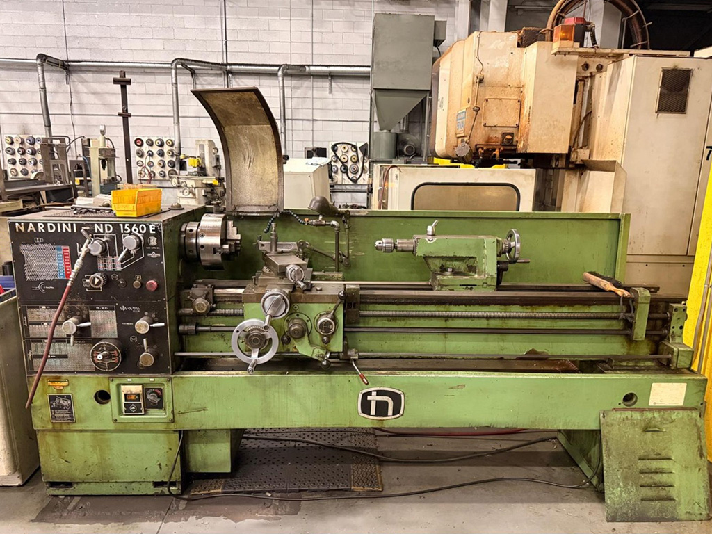 Torno NARDINI Capacidad: 15" x 60" Modelo: ND-1560E Paso de barra: 2" Velocidades: 25 a 2,000 RPM Chuck de 10" 3 mordazas
