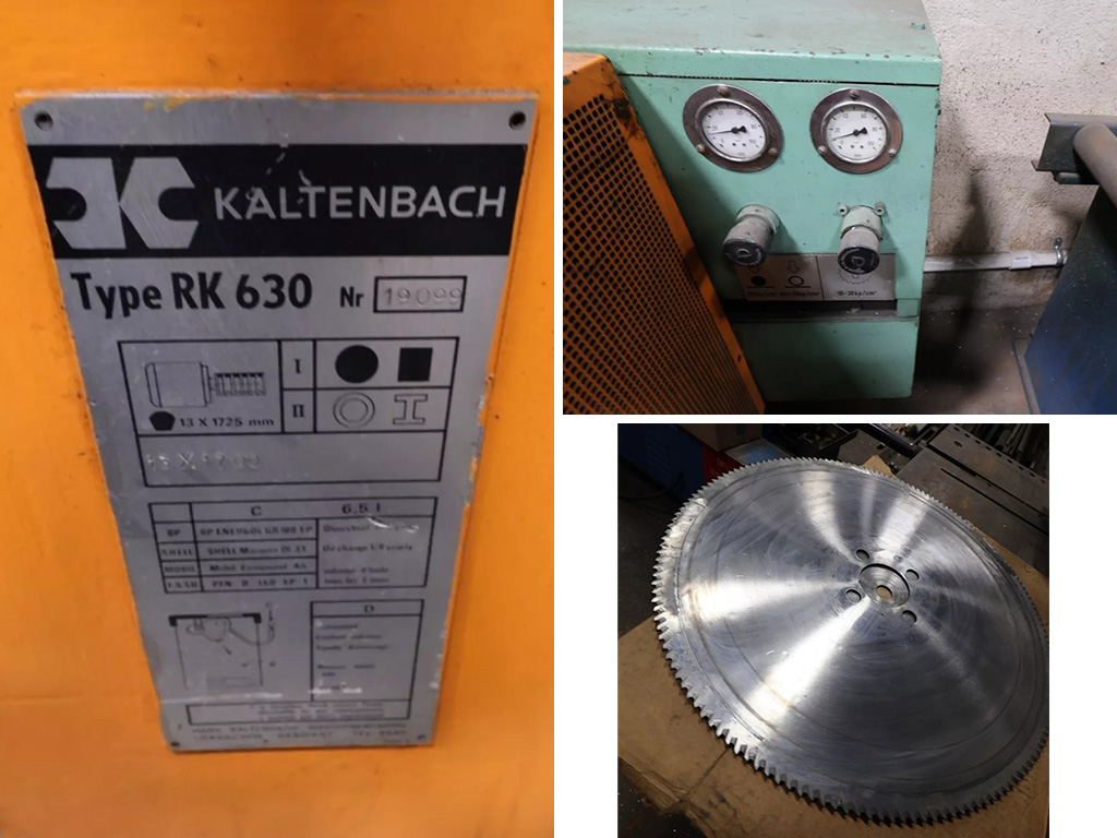 Sierra de Disco Sierra de corte en frio Capacidad de corte redondo: 7" Diametro del disco: 24" Modelo: RK630 Serie: 19099 Motor: 6 HP