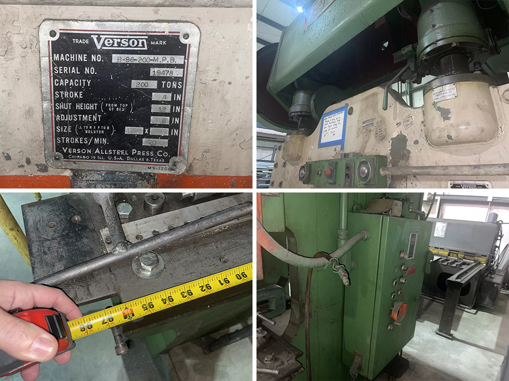 Prensa Dobladora Capacidad: 8' x 200 Ton Modelo: B-96-200-M.P.B. Serie: 19478 Luz: 12" Carrera: 4" Ajuste: 6" Golpes por minuto: 30